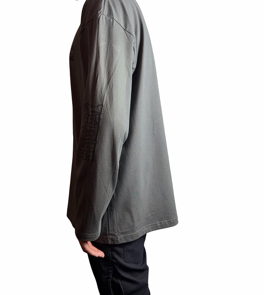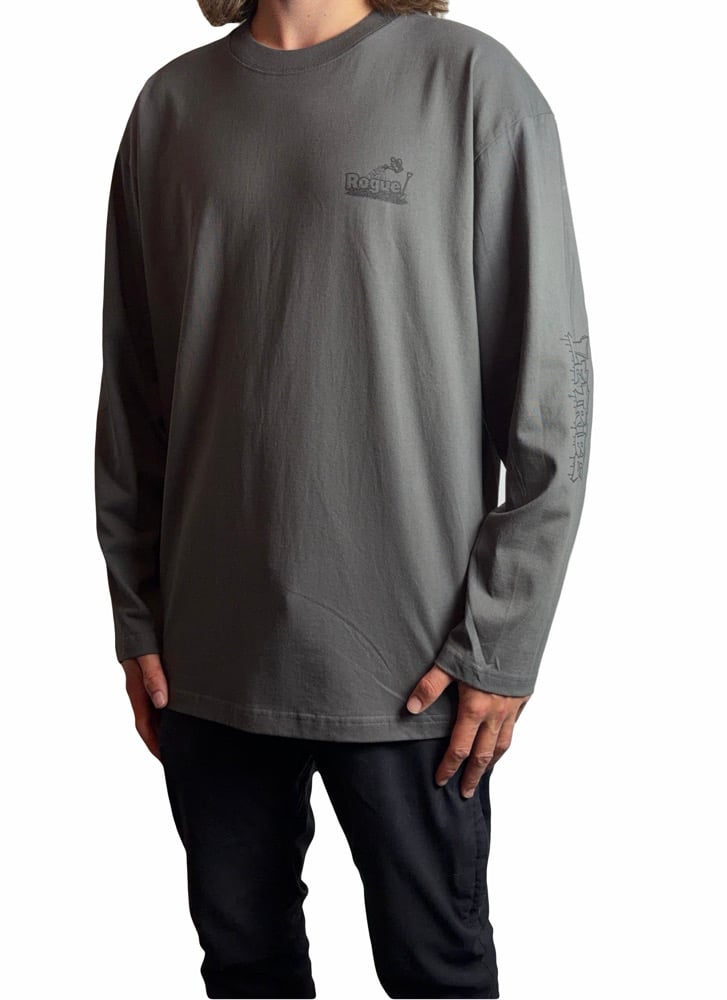 220 gsm heavyweight long sleeve with chest and sleeve screen prints. Relaxed fit built for everyday wear